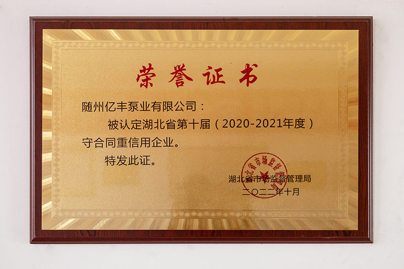 隨州億豐泵業有限公司位于隨州市曾都經濟開發區,建筑面積15000平方米,公司現有大學文憑以上的35人、技術人員25人(高級職稱5人、中級職稱以上27人)。公司自成立以來先后獲得高新技術企業、“專精特新”小巨人企業、隱形冠軍、著名商標等一系列榮譽。